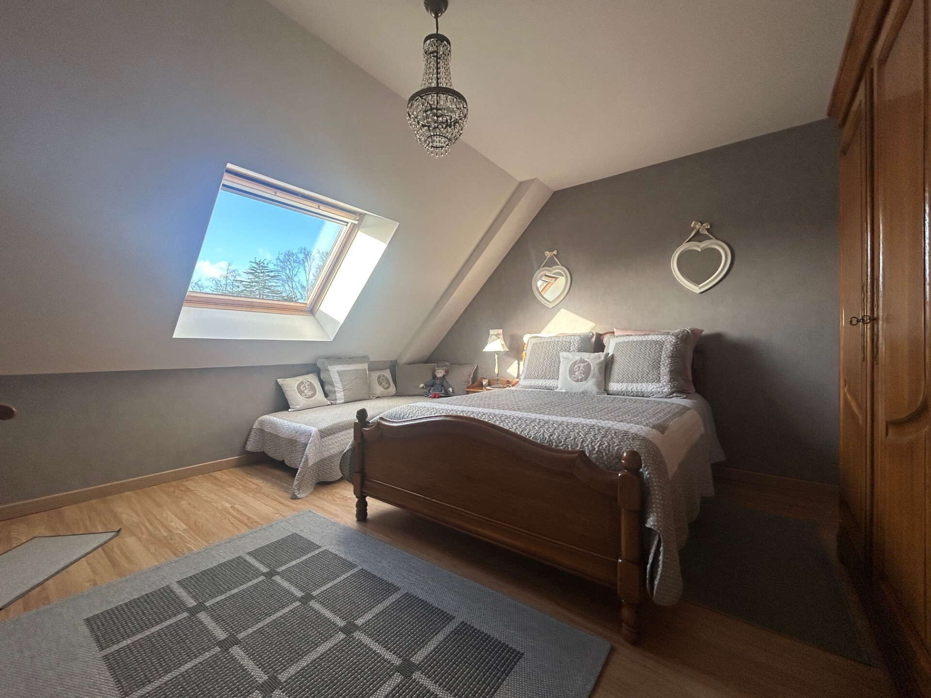 - A l'étage : mezzanine, 3 belles chambres dont 2 avec placards et salle de bains avec WC;